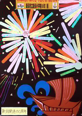 現在は昭和大橋上流で打ち上げていますが、当時は萬代橋の下流に船を浮かべて船から打ち上げたり、現在の万代島のあたりで打ち上げていたようです。2017年はそんな昔に思いをはせて萬代橋や柳をモチーフに制作してもらいました。