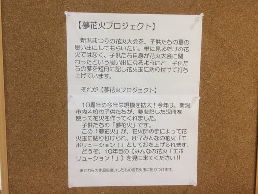 この短冊はみんなの花火「エボリューション!」がクライマックスを迎える瞬間の花火玉とともに新潟まつりのフィナーレの夜空に打ち上がります。