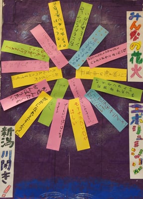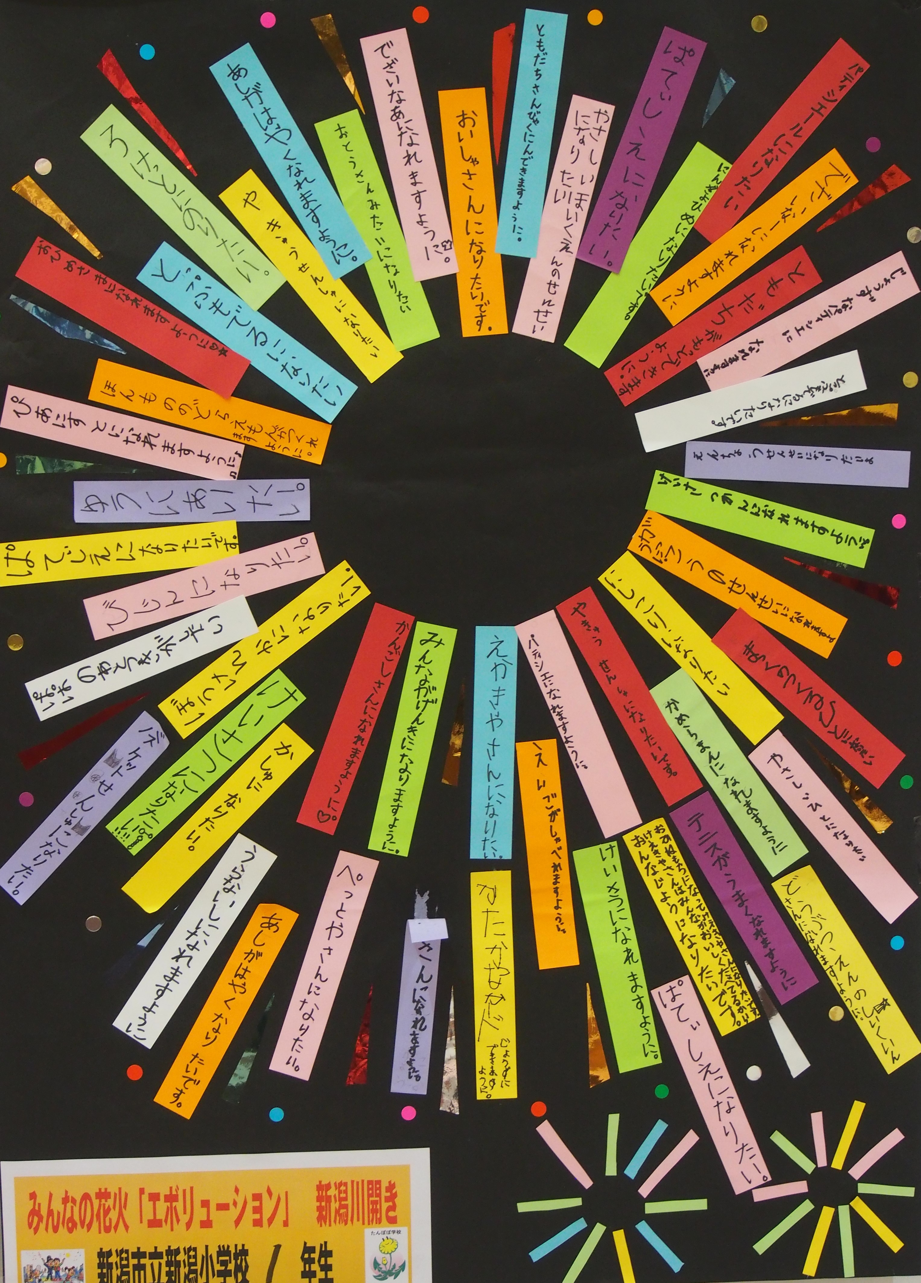 新潟市内の小学生たちに向け、花火師とHánnaの二人がそれぞれの職業を通じて社会にどのような価値を伝えてるのかを話し、その後、子どもたちに自分たちの夢を短冊に書いてもらっています。